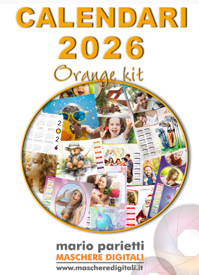 L'assortimento di calendari a foglio singolo 30x60 e 25x75 presenti nell'Orange kit 2026